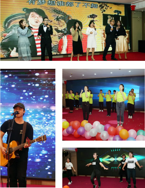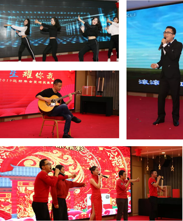 年會現(xiàn)場,其樂融融,員工們各展所長,紛紛呈現(xiàn)出精彩的表演,詼諧勵志的四小天鵝、惟妙惟肖的大咖模仿秀、溫暖深情的獨唱、美妙動聽的吉他彈奏、動感十足的舞蹈、祝福滿滿的手語舞、幽默搞笑的三句半、創(chuàng)意改編合唱等,通過節(jié)目紛紛表達出對同事、公司的樸實情感及對美好未來的祝福。